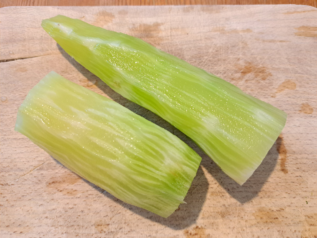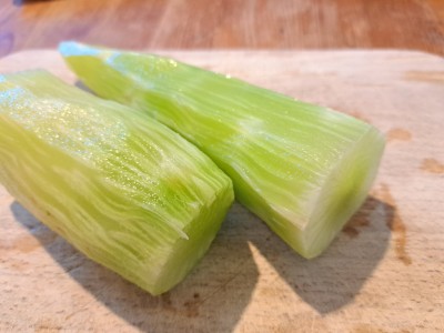 A spárgasaláta, szársaláta még a cukorborsónál is kevésbé ismert zöldségnövény. Kínában népszerű, vaskos, belül világos palackzöld szára és zsenge levelei is ehetők. Az én próbapéldányom szára hámozás nélkül 523 gramm tömegű, hámozás után 332 grammos volt, így két embernek vegyes zöldségköretbe éppen megfelelő egy tő. Én ázsiai stílusban készítettem el, hámozva, felszeletelve. Olívaolajon, fokhagyma és friss gyömbér társaságában pároltam meg, néhány perc alatt elkészült. Befejezésként citromlevet csepegtettem rá. Ági elkészítette már sonkával, sajttal sütve, de el tudom képzelni krémlevesként vagy hosszában kettévágva vagy negyedelve, meggrillezve is. ’Chinesische keule rezepte’ keresőszavakkal több recept is olvasható a neten, érdemes próbálkozni.