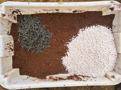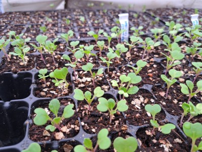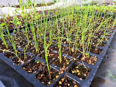 Szeretünk palántát nevelni, nagyon jó figyelemmel kísérni, ahogy a kis, gyenge növénykék erős, kiültetésre alkalmas példánnyá növekednek. Bár kisebb a fóliasátor mint a tavalyi, de így is szépen fejlődnek a pak-choi, gumós zeller, bok-choi, sóska, vérsóska és póréhagyma palánták, lassabban, de bújik a metélőhagyma, metélőpetrezselyem, leveles kel, metélő brokkoli is. Még a meleg szobában, növénylámpa alatt vigyázunk a néhány napos csili, padlizsán és földicseresznye vetésre. Pár nap múlva sort kerítünk a paradicsomokra is, de ezt nem kell elsietni, hiszen nálunk szabadföldbe, a fagyosszentek után ültetjük ki a kész növényeket. A tűzdeléshez tápanyagot is kapnak a növénykék, méghozzá gyapjúpelletet, a tőzeget pedig kertészeti perlittel lazítjuk.